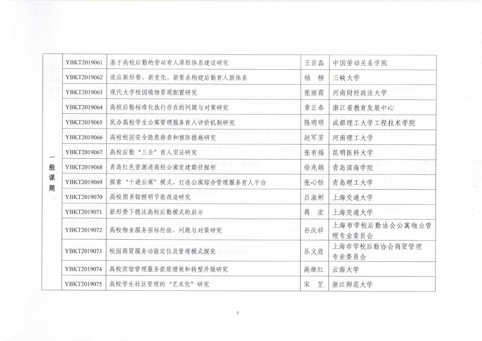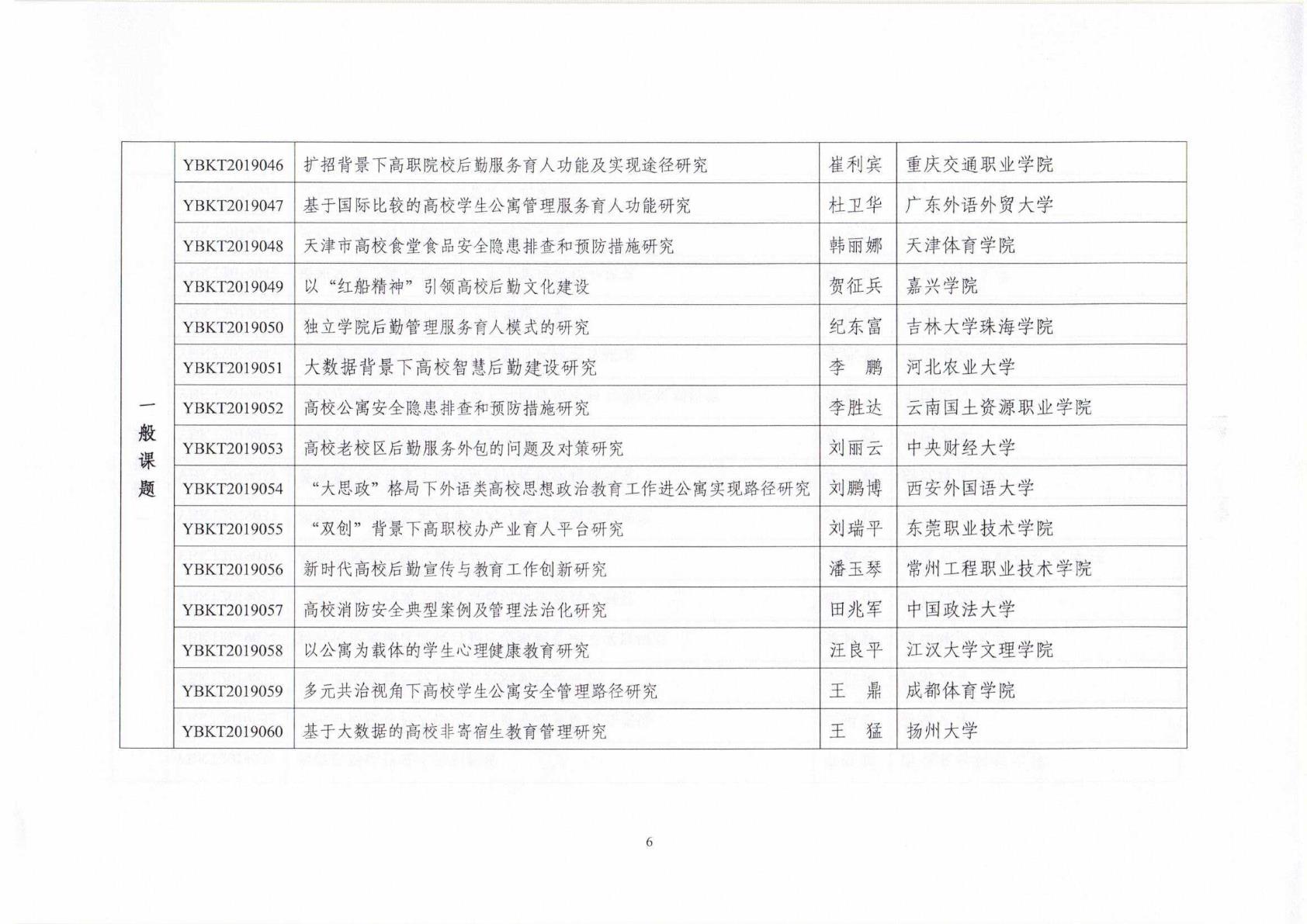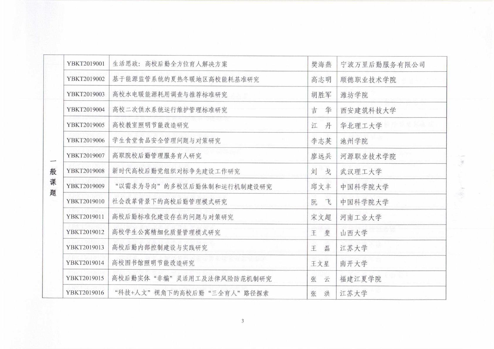 中国教育后勤协会2019年立项课题名单