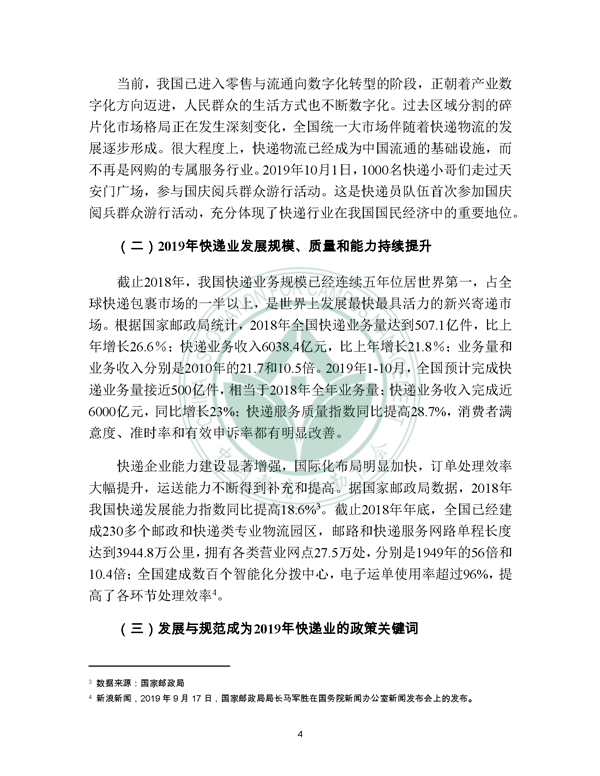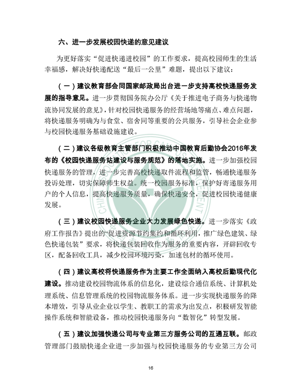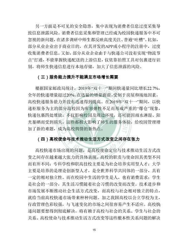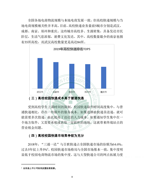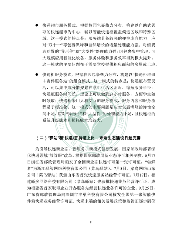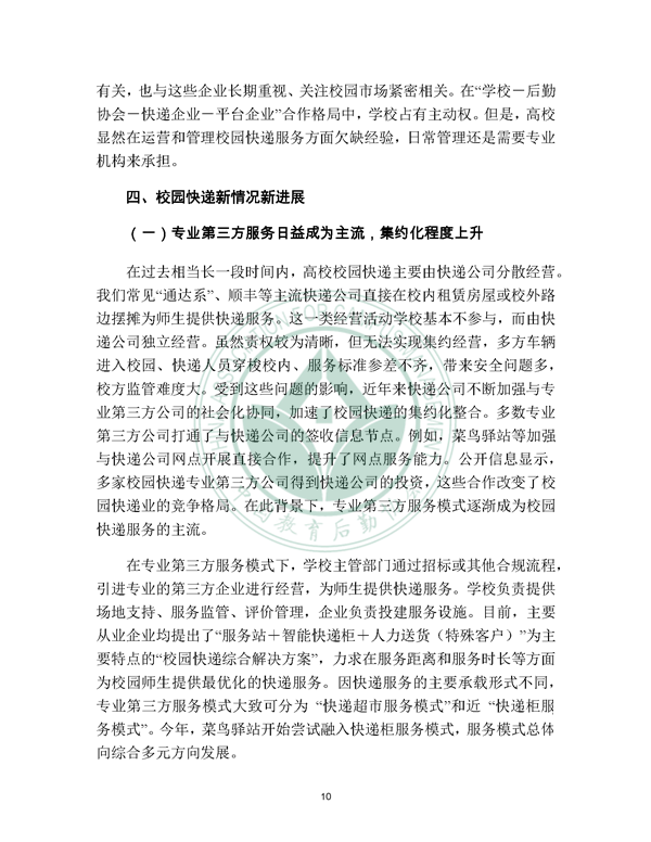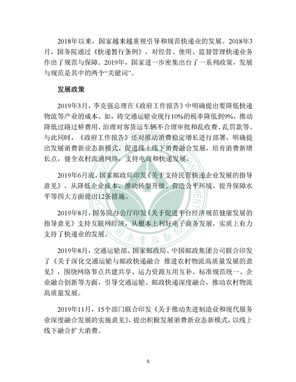 2019年12月21日, 校园快递行业发展报告(2019)发布。报告由中国教育后勤协会委托阿里研究院研究,由菜鸟网络、西南财经大学北京研究院支持。