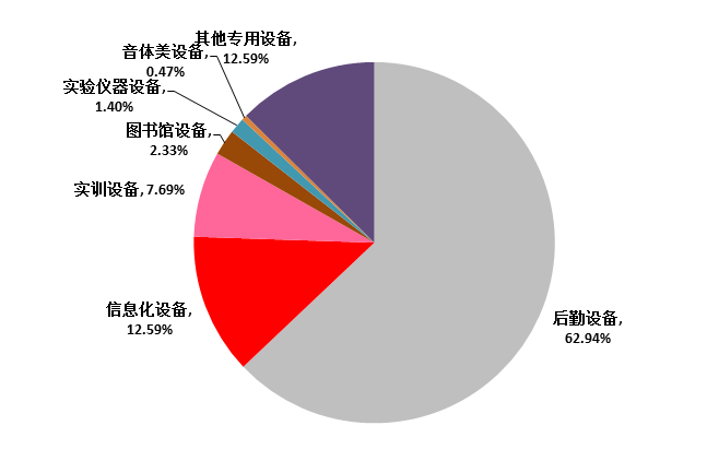 2月份全全国教育装备中标信息分类占比情况,如图7所示:后勤设备中标信息量共计270条,占62.94%;信息化设备中标信息共计54条,占12.59%;实训设备招中标信息共计33条,占7.69%;图书馆设备中标信息共计10条,占2.33%;实验仪器设备中标信息共计6条,占1.40%;音体美设备中标信息共计2条,占0.47%;其他专用设备中标信息共计54条,占12.59%。