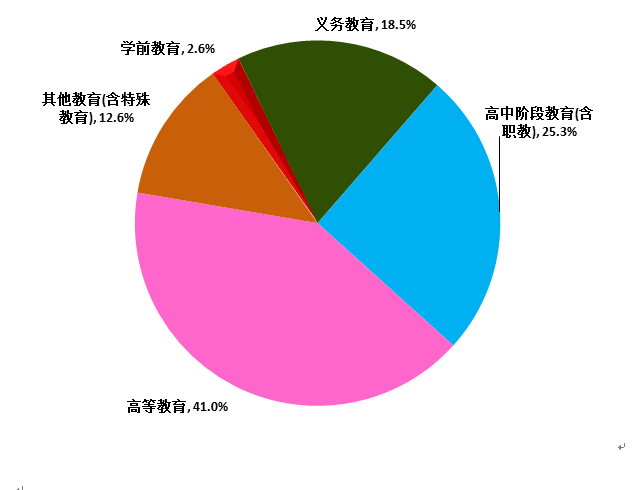 2月全国教育装备中标信息所属领域统计图,如图10所示:学前教育占比为2.6%;义务教育占比为18.5%;高中阶段教育(含职教)占比为25.3%;高等教育占比为41.0%;其他教育(含特殊教育)占比为12.6%。