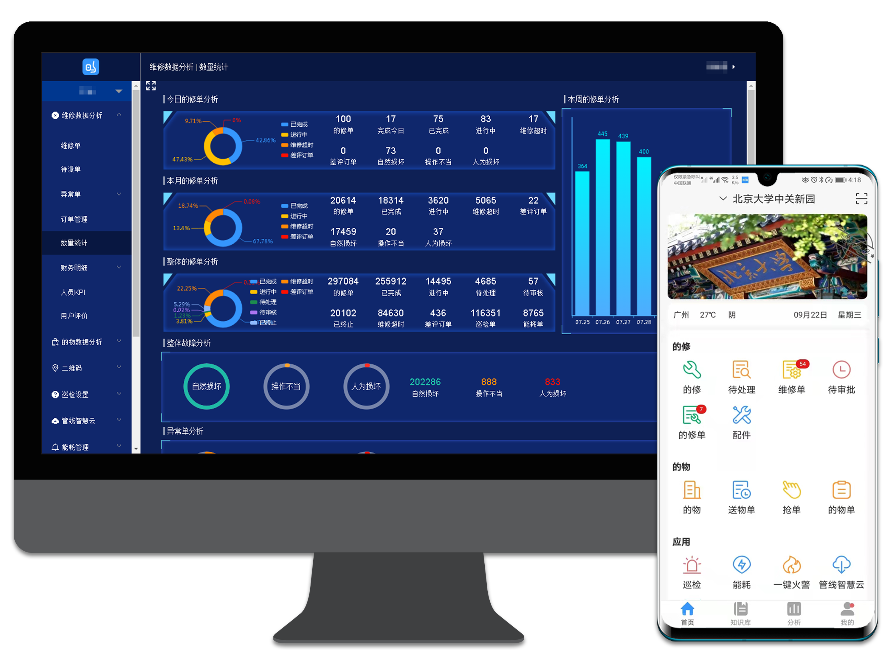 电话、纸质报修对设备名称、具体位置以及故障问题等信息无法描述清楚,难以运用图片或视频加以辅助说明,致使维修员无法对设施故障情况做出准确判断,进而影响维修进度。