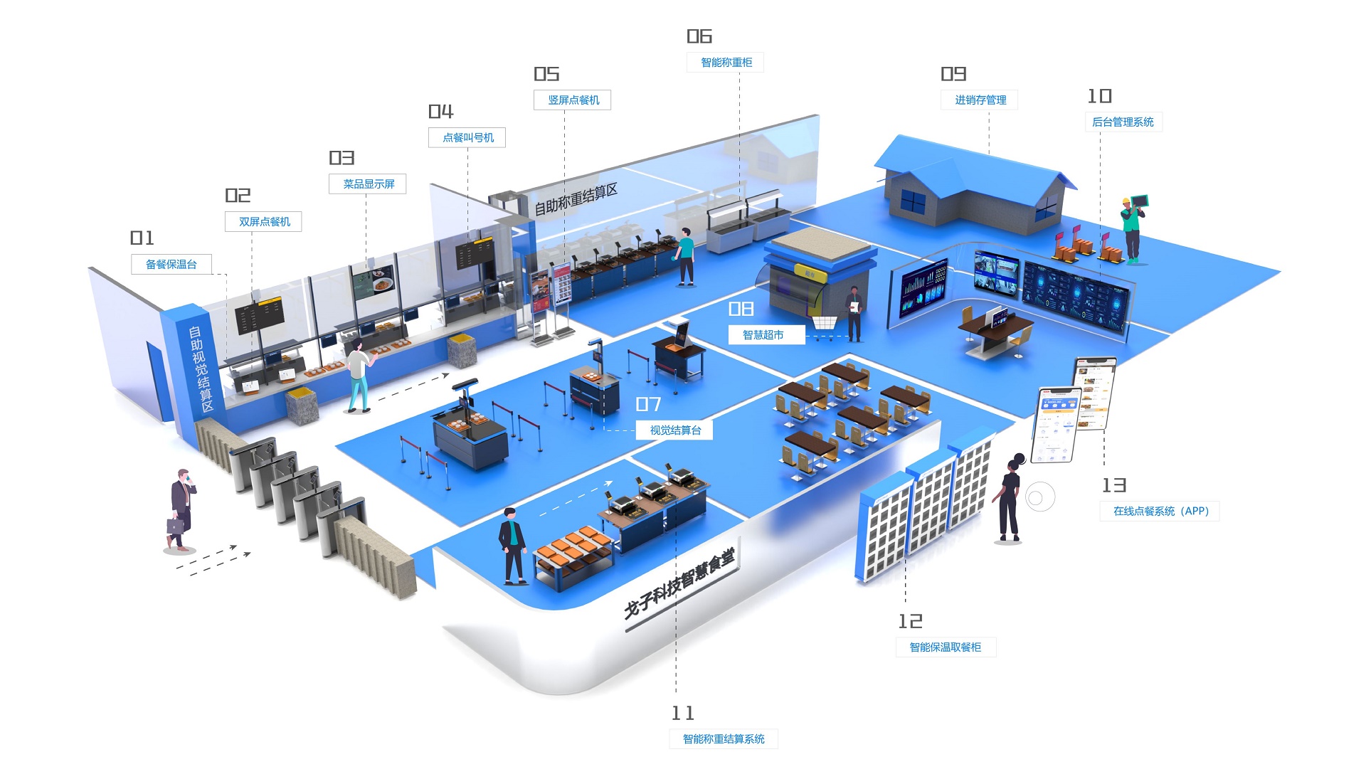 戈子科技依托人工智能技术、软硬件技术和配套产品服务,融合世界前沿的先进技术理念,围绕食堂自选模式、窗口模式、订餐模式,计重消费模式中的流程,研发出了行业领先的智慧食堂全场景解决方案。