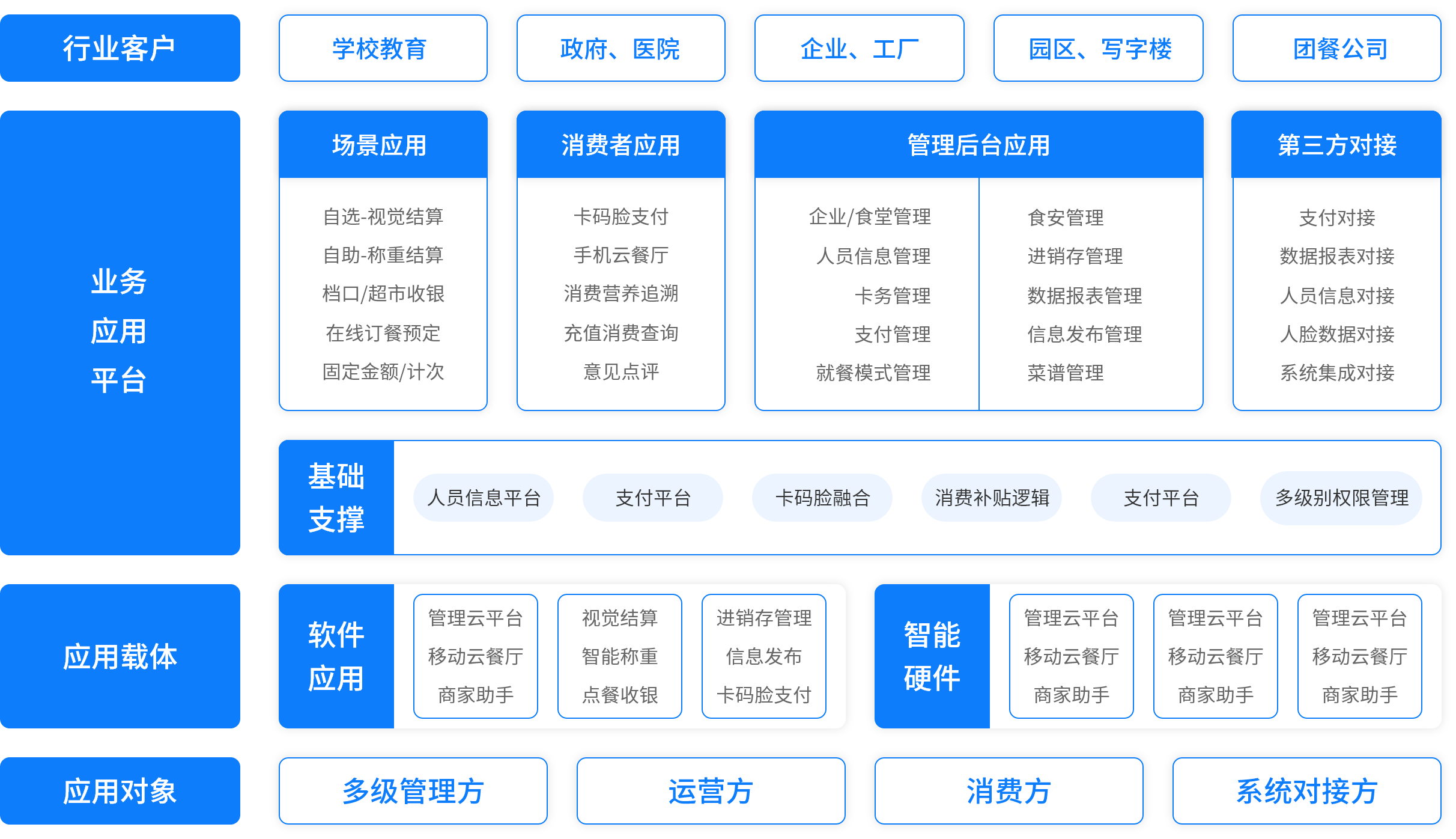 依托人工智能技术、软硬件技术和配套产品服务,融合世界前沿的先进技术理念,戈子科技围绕食堂自选模式、窗口模式、订餐模式,计重消费模式中的流程研发了戈子视觉结算系统、在线订餐系统、智能支付设备、进销存管理系统、智能称重结算系统等产品。