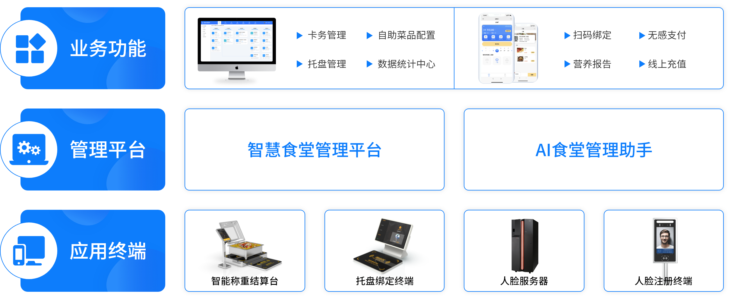 用自动化营养数据分析、数字化食堂管理、AI视觉结算,智能称重结算等科学技术助力学校后勤实现线上线下互联,减少食堂浪费及可持续发展,也助力学校智能化、数字化、精细化管理的愿景,开启「智慧校园」后勤管理新模式!
