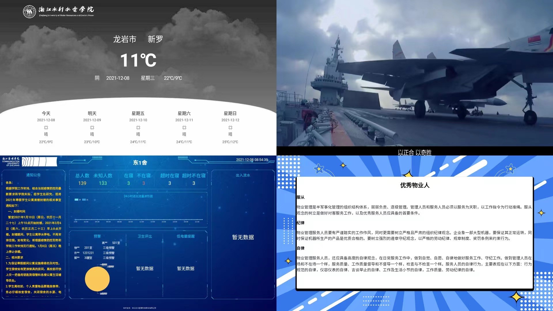 支持自定义H5 ,视频,直播,图片,黑板报等多媒体内容展示;