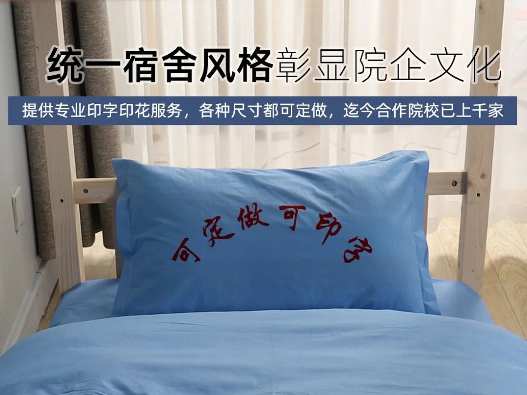 柳伊床品可以提供印字和烫字服务,让单位宿舍彰显文化氛围及品牌效应。