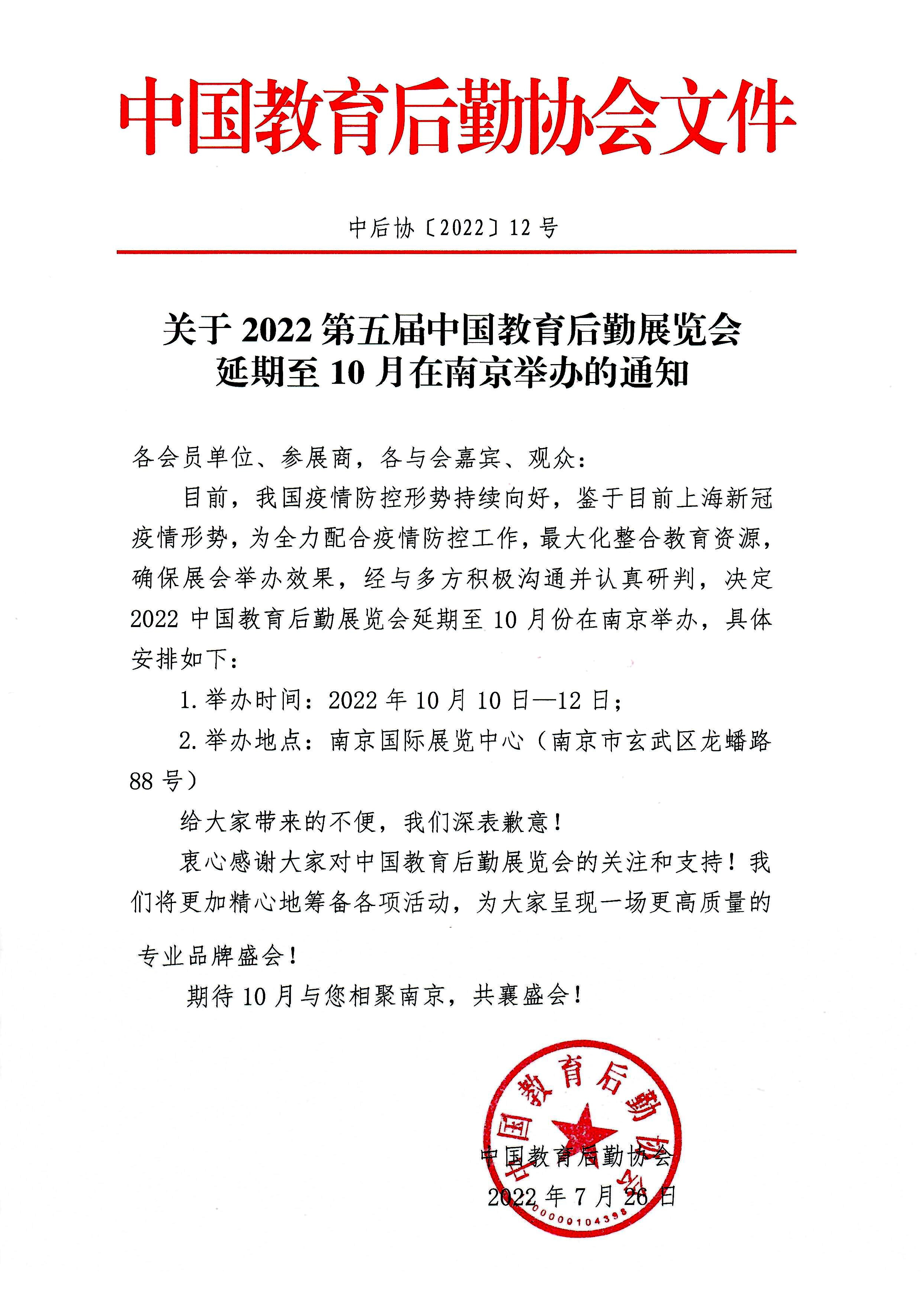 目前,我国疫情防控形势持续向好,鉴于上海新冠疫情最新形势,为全力配合疫情防控工作,最大化整合教育资源,确保展会举办效果,经与多方积极沟通并认真研判,决定2022中国888集团welcome大厅览会将延期至10月份在南京举办,具体安排如下: