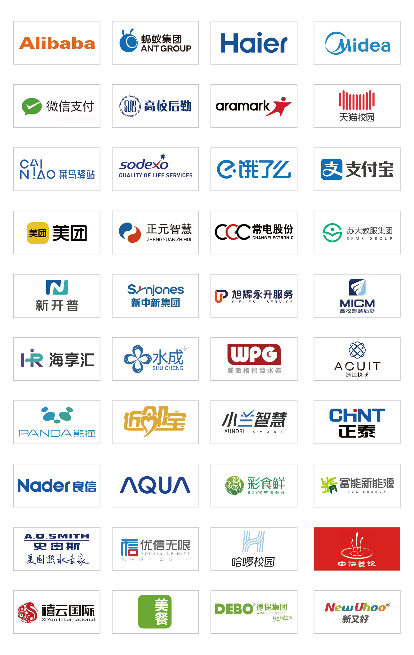 展会不仅吸引阿里巴巴集团、微信、海尔智家、美的集团、美团、上海高后股份、智慧后勤研究院、爱玛客、苏大教服集团、正泰、良信、永辉、永升物业等行业大咖积极参与,而且校园一卡通三大运营商正元智慧、新开普、新中新等相关业态齐聚现场,共建教育后勤管理服务品牌盛宴。