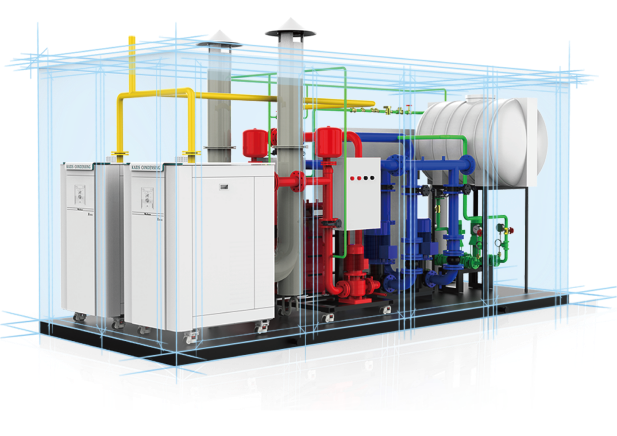 公司推出的卡吉斯全预混高效冷凝锅炉、全预混高效冷凝锅炉、供热机组、换冷/热循环机组、换冷/热机组、循环机组、装配式热源站、耦合式能源站等一系列装配式功能模块让天下没有难做的能源站成为现实。