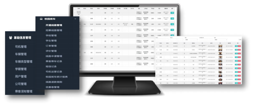 智慧校车系统中建有车辆库、司机库、学生基础信息库与人脸库,方便校车公司进行车辆、司机、学生基础信息的管理;系统中建有新线路信息采集、线路管理、站点管理、票价管理、订单管理、对账管理等模块,方便校车公司进行日常运营、司机调度和费用对账等管理。