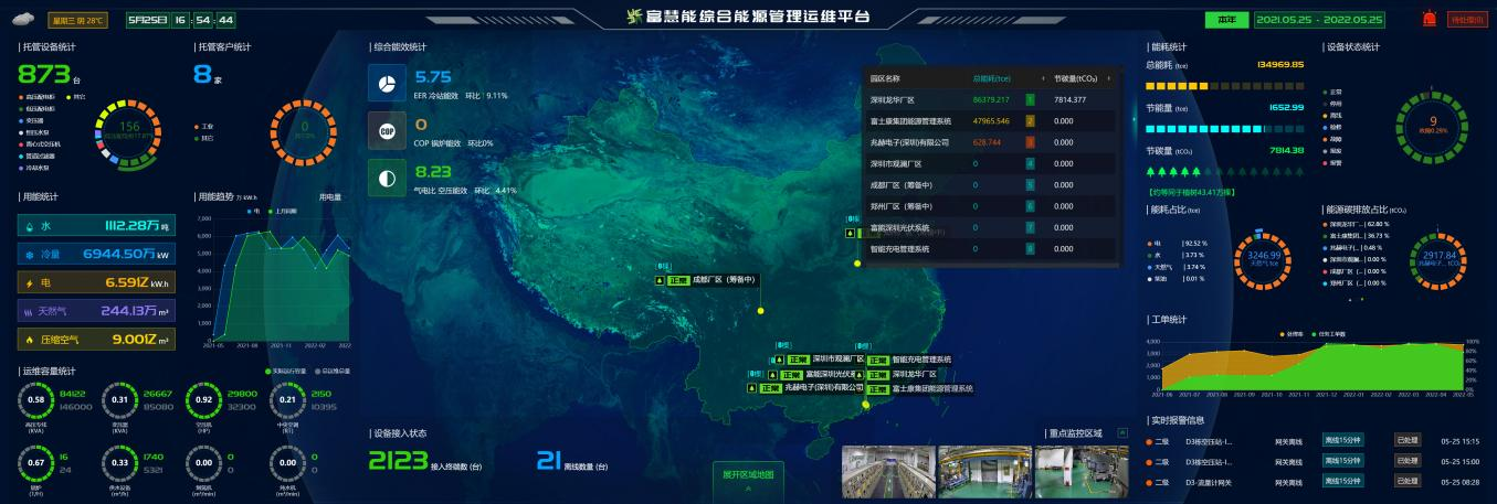 通过多年的能源管理运维经验,结合自主研发的“富慧能”智慧综合能源管理平台,以数据智能为核心驱动,实现人与人、人与设备、人与知识的高效协作,人、机、料的全生命周期管理。