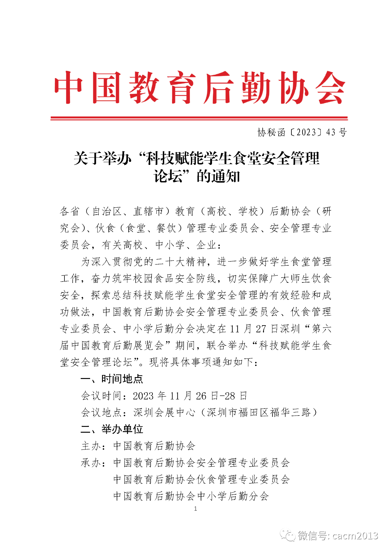 关于举办“科技赋能学生食堂安全管理论坛”的通知