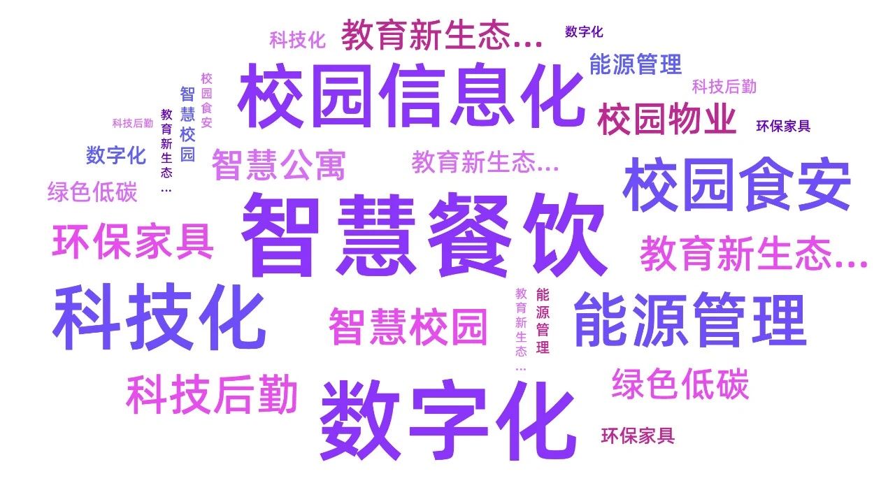 专注校园管理服务,涉及校园餐饮、能源、安全、信息化、物业、公寓、商贸、建设与修缮等方面,已发展成为全国教育后勤领域内涵盖品类齐全,具备高度专业性和广泛影响力的“大后勤生态交流圈”。