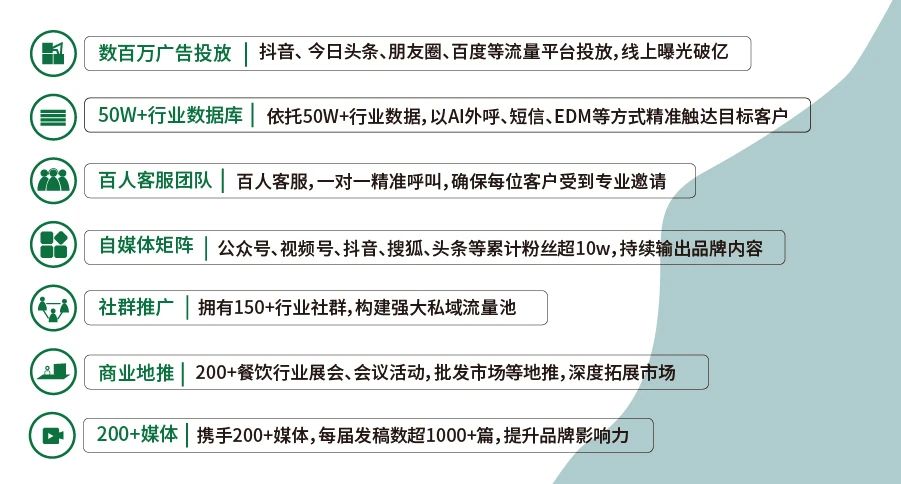 团餐标准化食品、预制菜、营养餐、地方美食、特色小吃等现代快餐饮连锁加盟品牌、咖啡茶饮等品牌及校园团餐数字化解决方案等。