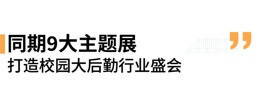 展会同期,围绕校园能源管理、后勤信息化、物业、安全、健康空间、环保家具、商业服务、建设与修缮、中小学后勤主题举办相关展会,打造校园大后勤行业盛会。