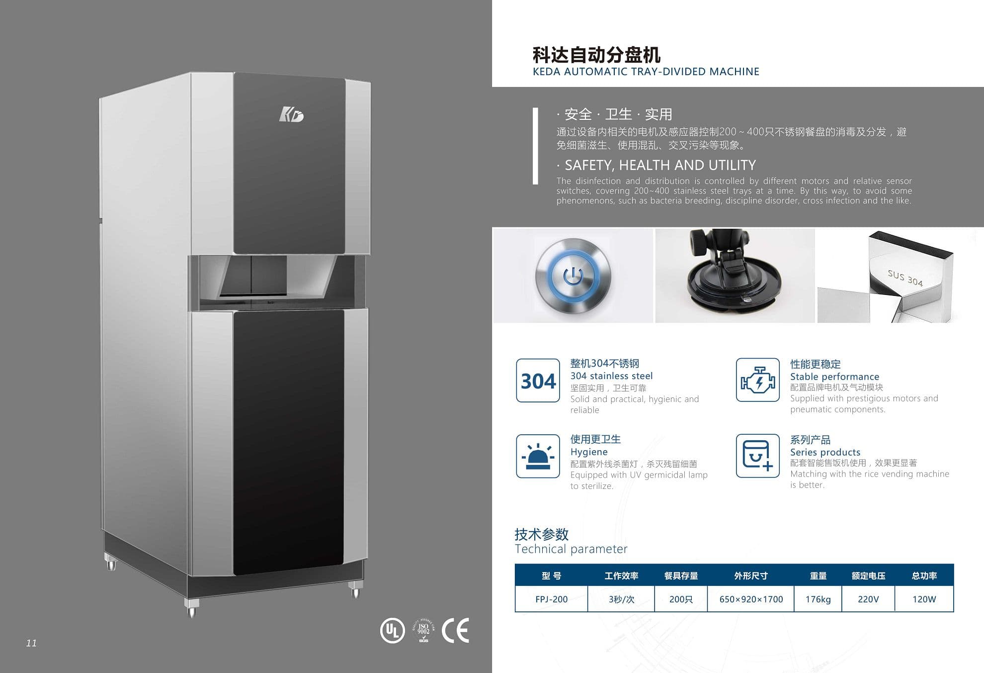 智能餐饮设备(KD商标)旗下系列产品包括:智能售饭机、电动升降车、自动分盘机、餐具清洗线等,并通过《食品安全国家标准》的检验,运用机械自动化、设备智能化、数据应用化等先进技术,与“互联网+”相结合,全面颠覆传统的餐饮运营模式,使餐饮业也能跟随工业主流,做到人机互换,使用智能化、机械化的管理和应用,对食品安全、生产安全、精化效率、节约减排进行更合理、更有效的把控。