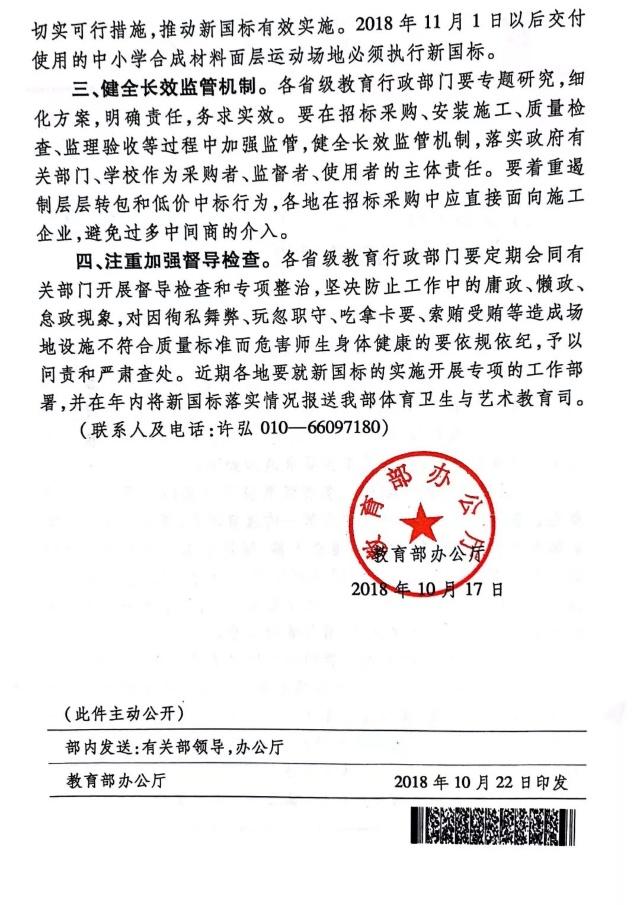 为进一步加强中小学合成材料面层运动场地建设管理,确保中小学校广大师生的健康安全,教育部办公厅发布关于加强中小学合成材料面层运动场地建设管理的通知。