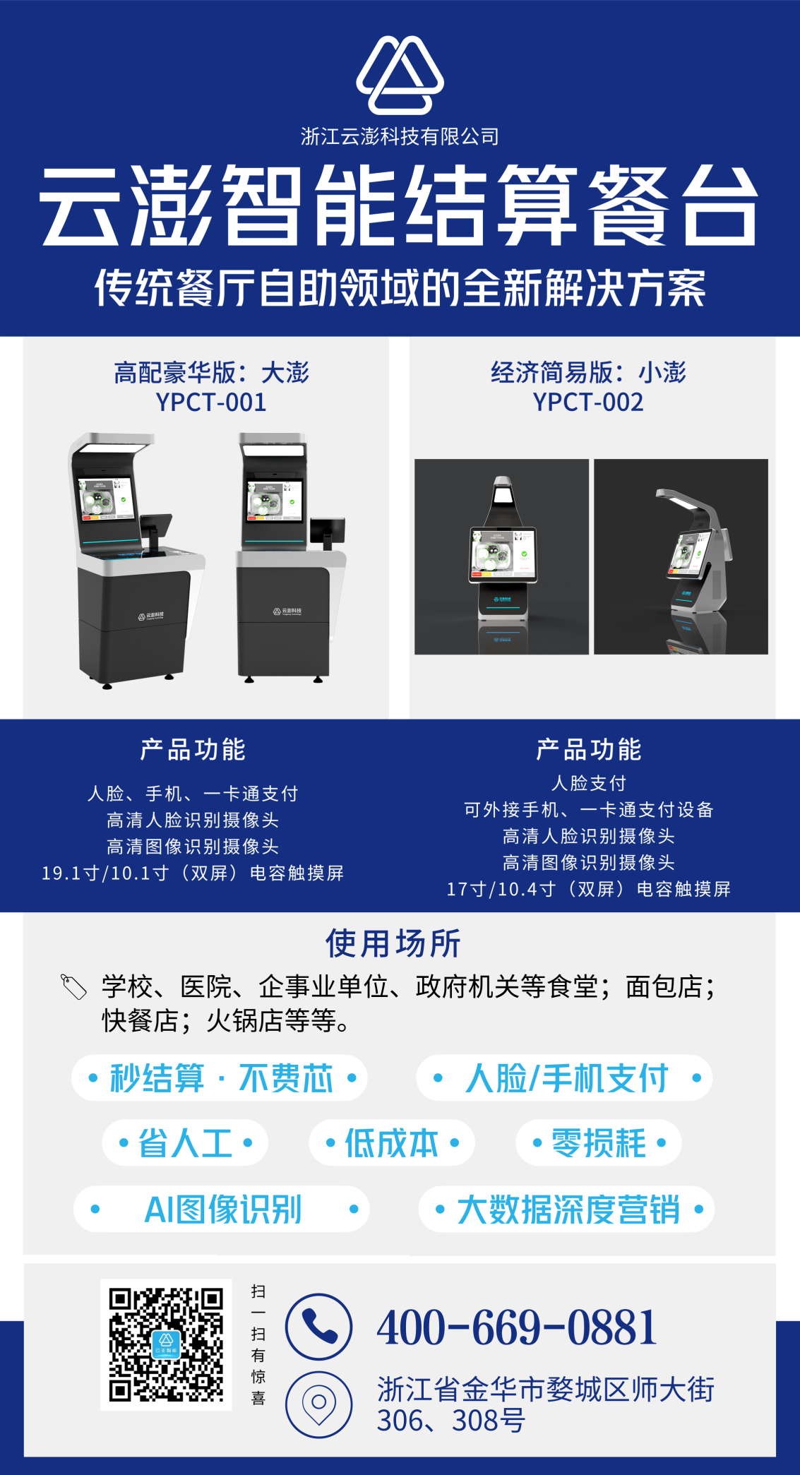 公司的研发团队针对高校、工厂、企事业单位等团膳、零售及相关领域普遍存在的人工计价结算效率低下、运营数据混乱等问题,深入研发了以“云澎智能结算系统”为主的一系列将AI人工智能图像信息技术应用到相关领域的产品,提供一整套全新的解决方案。