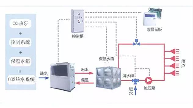 1、CO2热泵是一次式制热设备,给水始终由冷水稳压水箱直接供给,热泵平均运行效率较高;